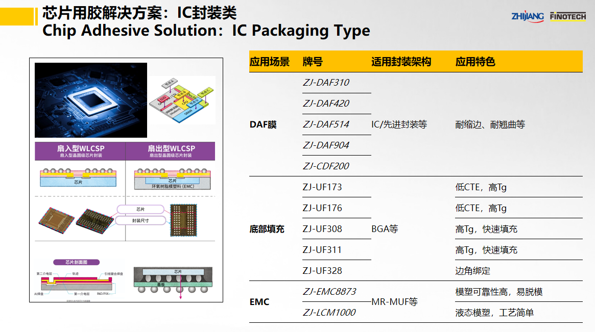 杭州之江作為國內領先的膠黏劑密封膠生產企業,為全球半導體IC封裝提供電子先進材料解決方案及一體化服務,不斷通過環氧、有機硅、丙烯酸酯等產品系統創新,推動半導體IC封裝行業高質量發展。